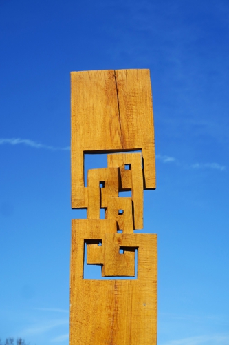 2021 „Ostpreußischer Obelisk Gut Eglsee“, Eiche, H = 500 cm, Bronzebänder erstellt von Regine Herzog